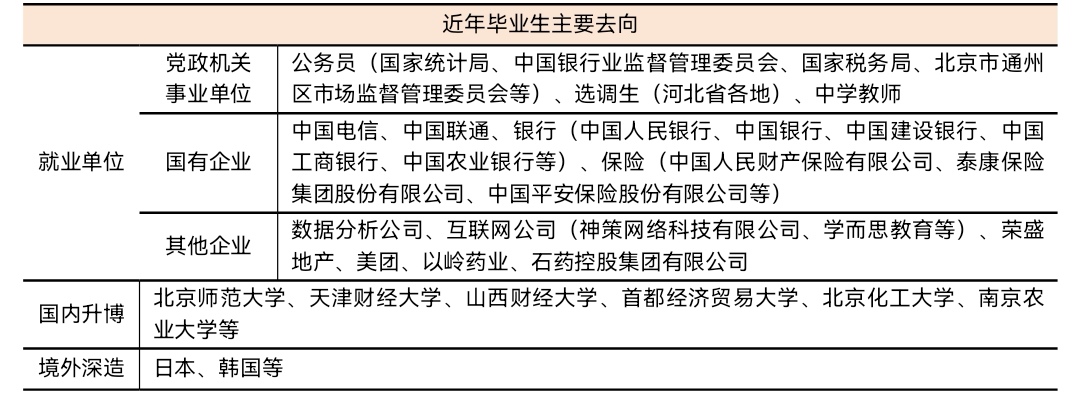 以统计实务和经济统计分析作为培养方向,注重统计制度、流程与技术的学习,强调学生统计数据质量管理与控制能力的培养,为各级政府统计部门和企事业单位培养能够熟练运用统计理论与方法从事统计数据搜集、整理与分析的高级统计专门人才。