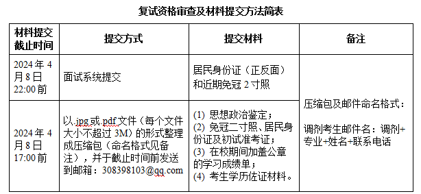 二、复试资格审查及材料提交方法