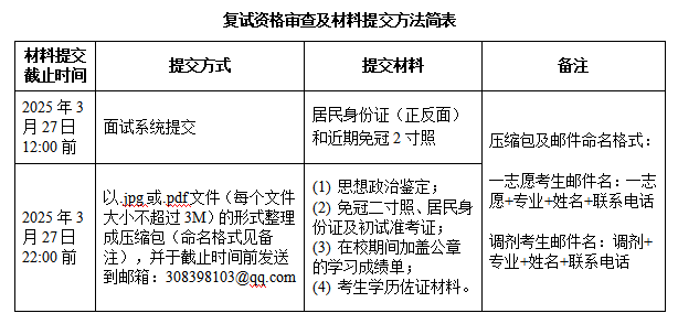 1.复试考生须提前准备以下材料的扫描件或照片,同时自行保存好原件,用于资格审核,资料不全者不予复试。