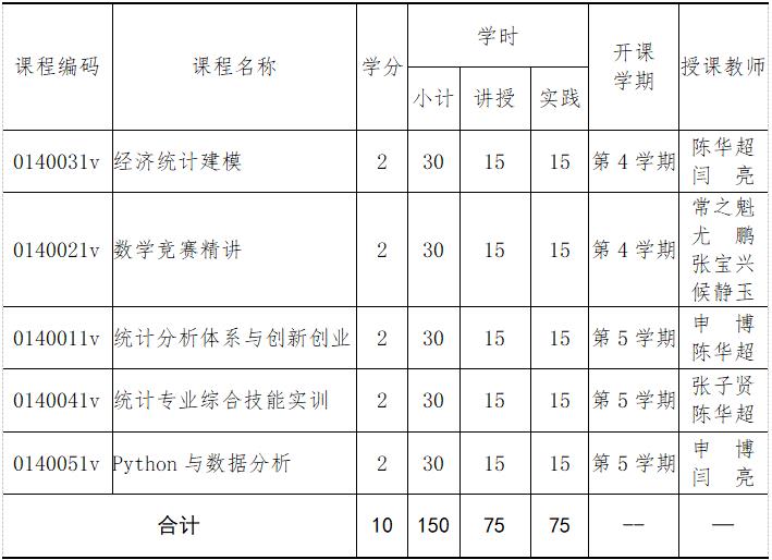 定位:基于学生学科竞赛能力提升培养定位,以数统学院承办的全国大学生市场调查与分析大赛、统计建模大赛、数学建模大赛、数学竞赛等赛事为平台,将统计学、应用统计学、数学、经济学等学科知识交叉融合,通过知识传授和实践操作提升学生的统计素养、科研素养和综合素质。
