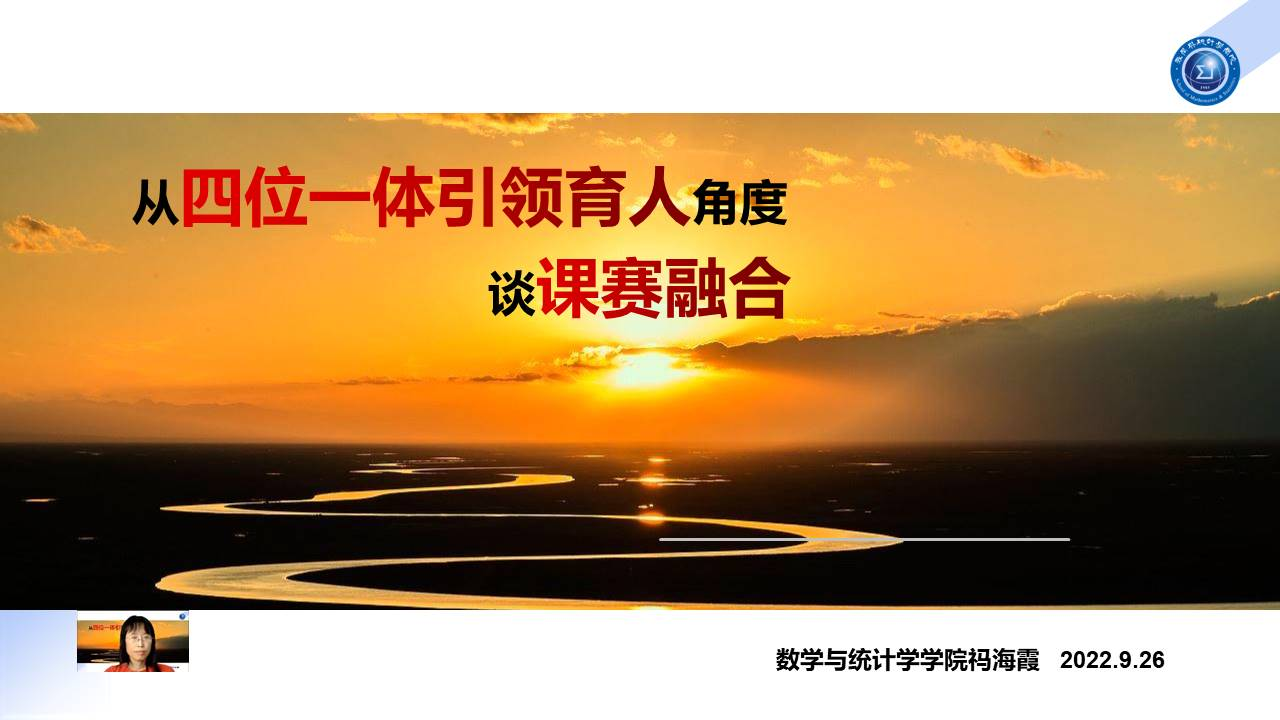 9月26日,由教学评估与教师教学发展中心主办、数学与统计学学院承办的本年度第53期教学沙龙顺利举行。数统学院党委书记祃海霞教授做“从四位一体引领育人角度再谈课赛融合”研讨交流。