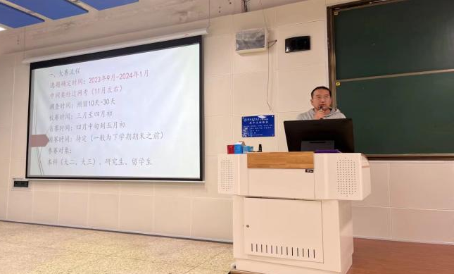 首先,市调赛事负责人闫亮老师向同学们介绍了本次宣讲会出席的老师和同学,并讲解了必赢官网学生在本项赛事上取得的优异成绩,去年必赢官网本科组共荣获国家一等奖1项、国家二等奖2项、国家三等奖12项,其中国一队伍进入全国前26强,在复活赛中争夺公开赛名额,打破必赢官网记录取得佳绩。