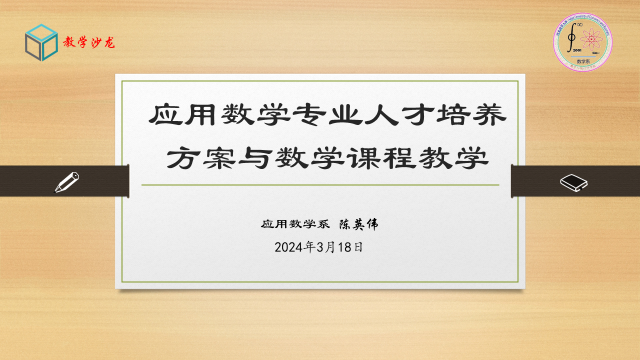 3月18日,由教学评估与教师教学发展中心主办、必赢国际437官网承办的数统智汇(2024年第1期,总期第44期)沙龙活动顺利举行。数学与应用数学系系主任陈英伟博士做了“应用数学专业人才培养方案与数学课程教学”经验交流分享。学院党委书记祃海霞、副院长王玲书、副院长闫亮及学院部分教师30余人参加。