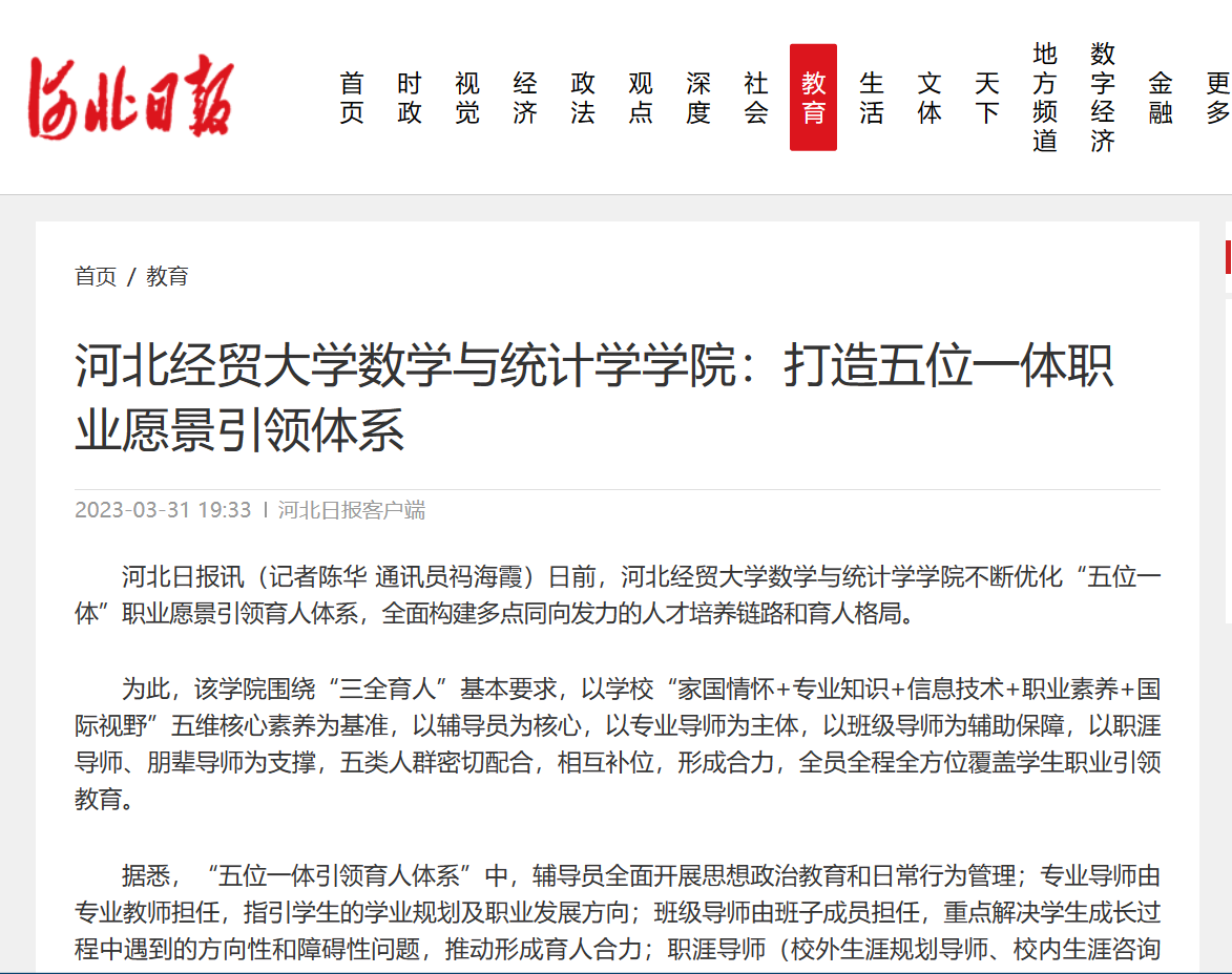 【河北日报客户端】必赢国际437官网数学与统计学学院:打造五位一体职业愿景引领体系