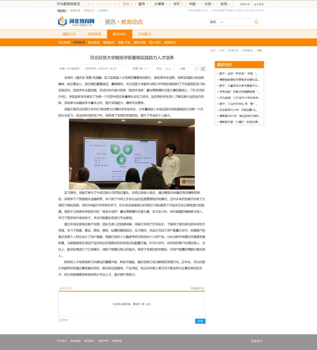 【河北教育网】必赢国际437官网数统学院暑期实践助力人才培养