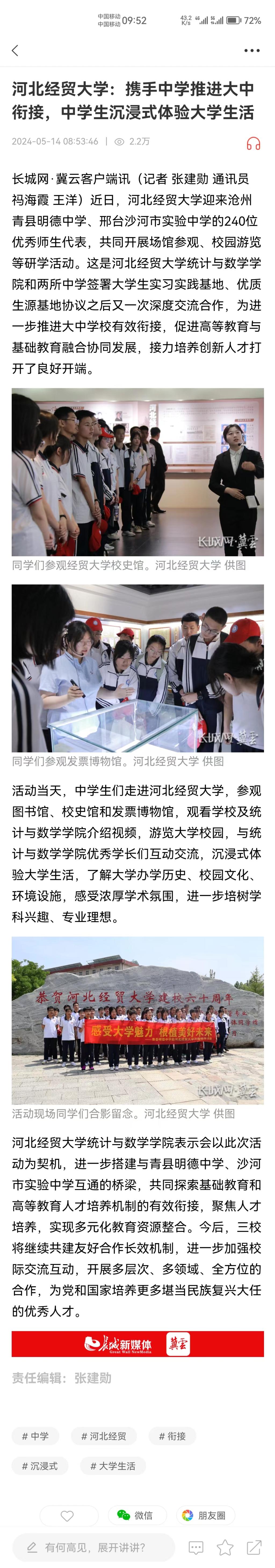 【长城网•冀云客户端】必赢国际437官网:携手中学推进大中衔接,中学生沉浸式体验大学生活