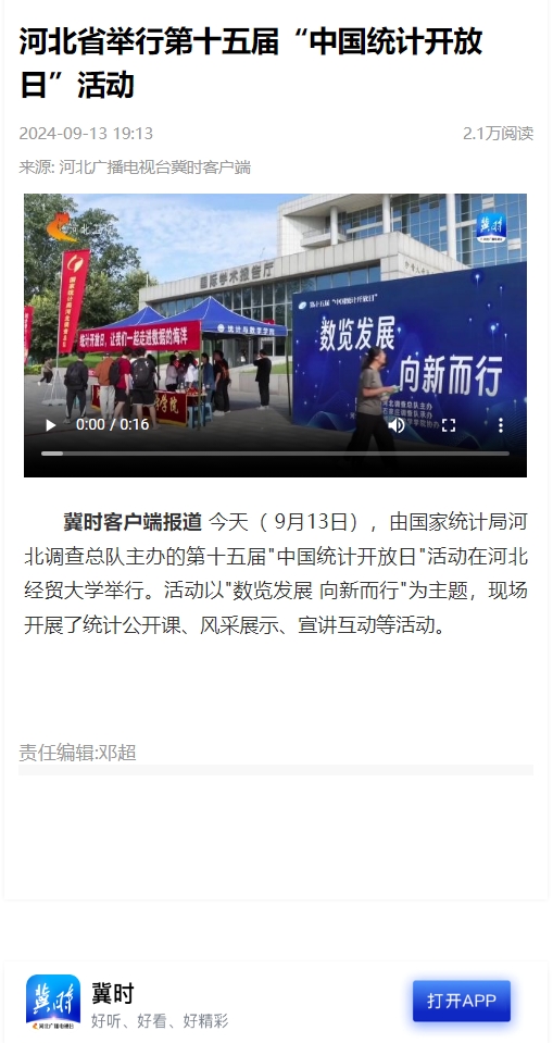 【河北广播电视台冀时客户端】河北省举行第十五届“中国统计开放日”活动