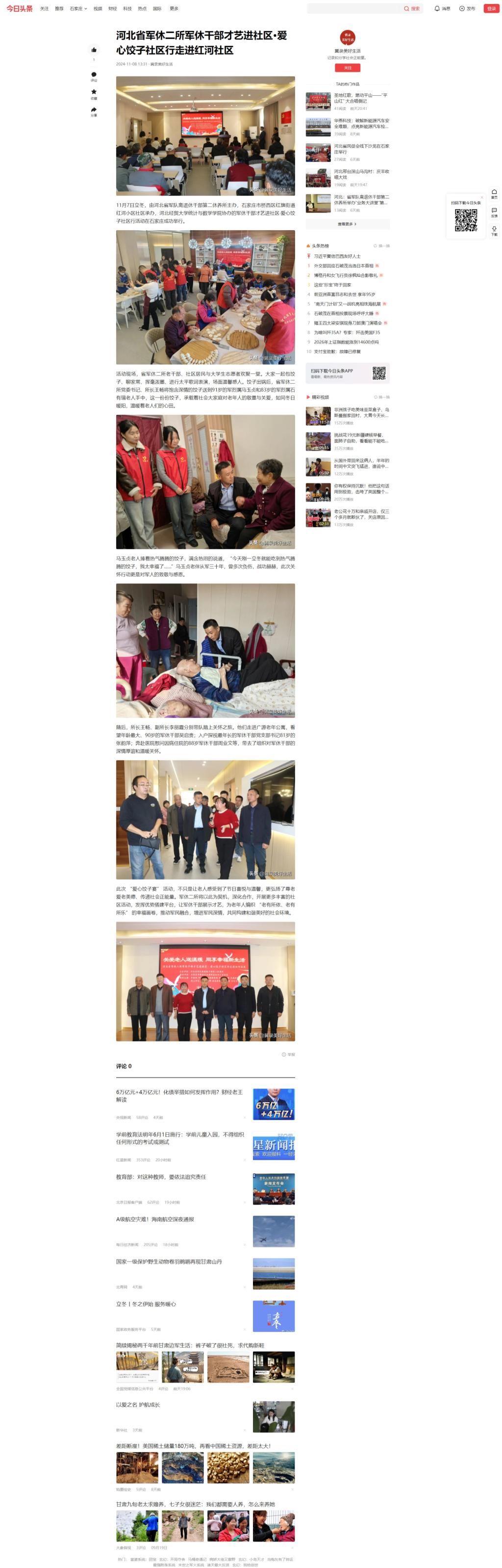 【今日头条】河北省军休二所军休干部才艺进社区·爱心饺子社区行走进红河社区