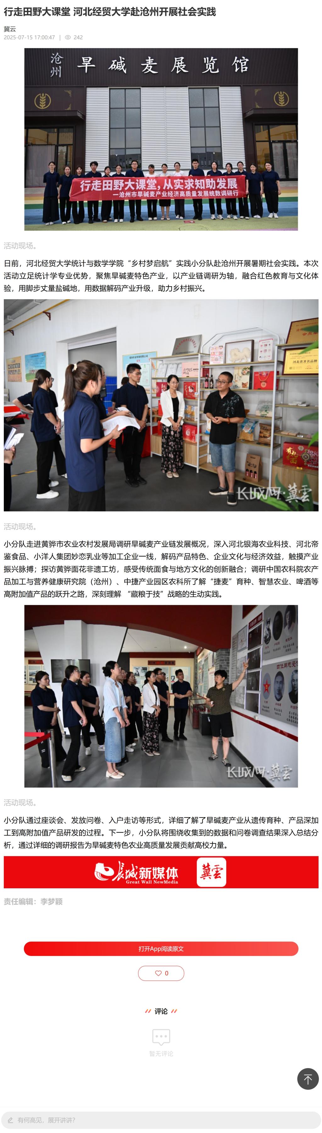【长城网冀云客户端】行走田野大课堂 必赢国际437官网赴沧州开展社会实践