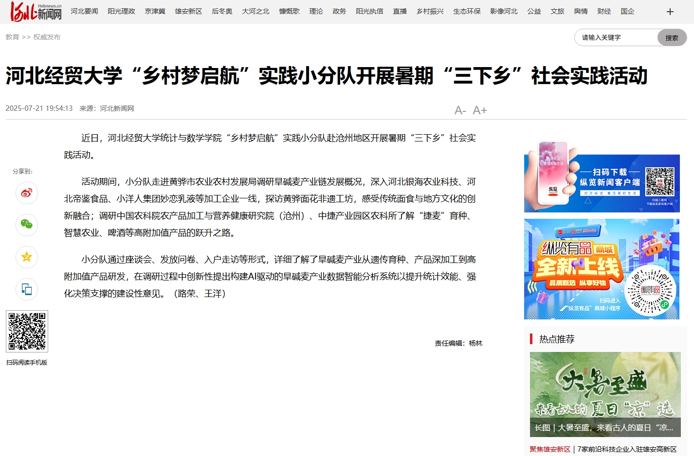 【河北新闻网】必赢国际437官网“乡村梦启航”实践小分队开展暑期“三下乡”社会实践活动
